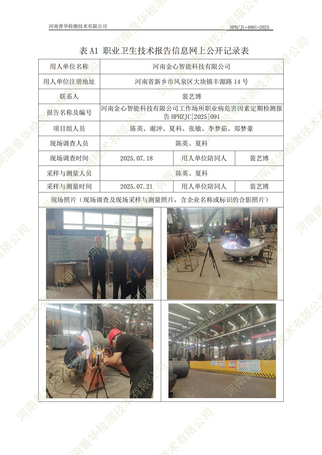 河南金心智能科技有限公司工作场所职业病危害因素定期检测 点击次数:165 次