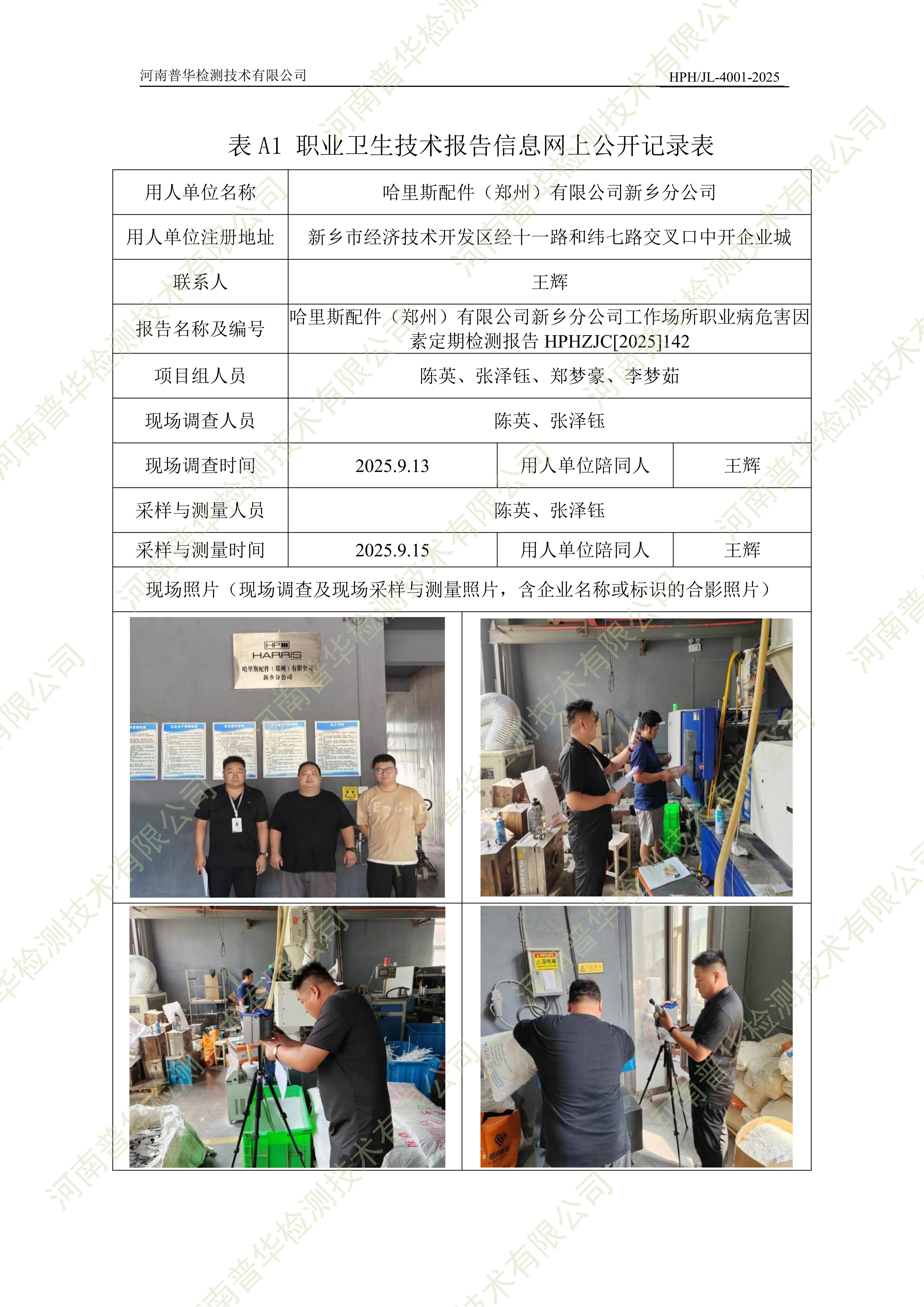 哈里斯配件(郑州)有限公司新乡分公司工作场所职业病危害因素定期检测 点击次数:99 次