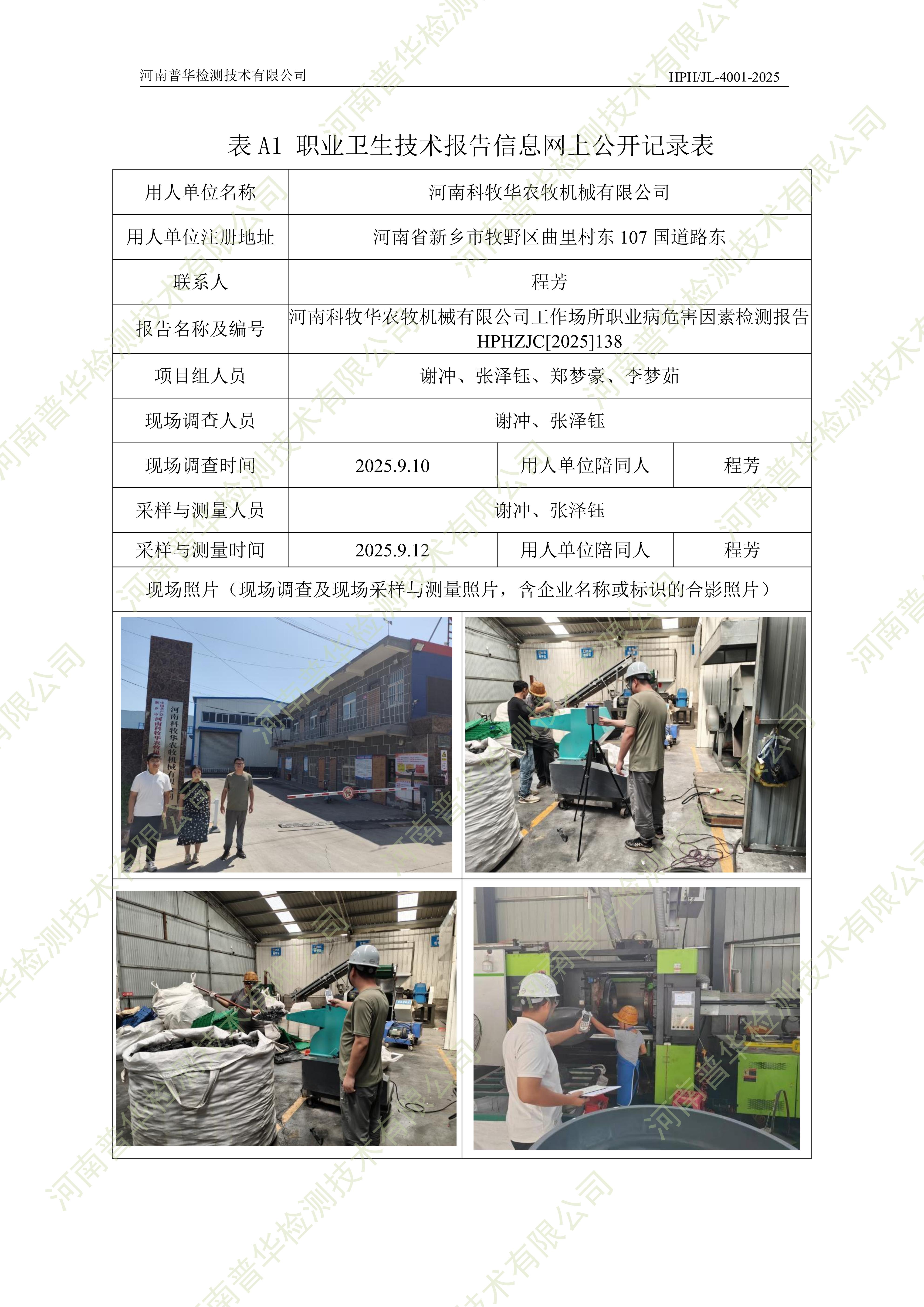 河南科牧华农牧机械有限公司工作场所职业病危害因素检测 点击次数:104 次