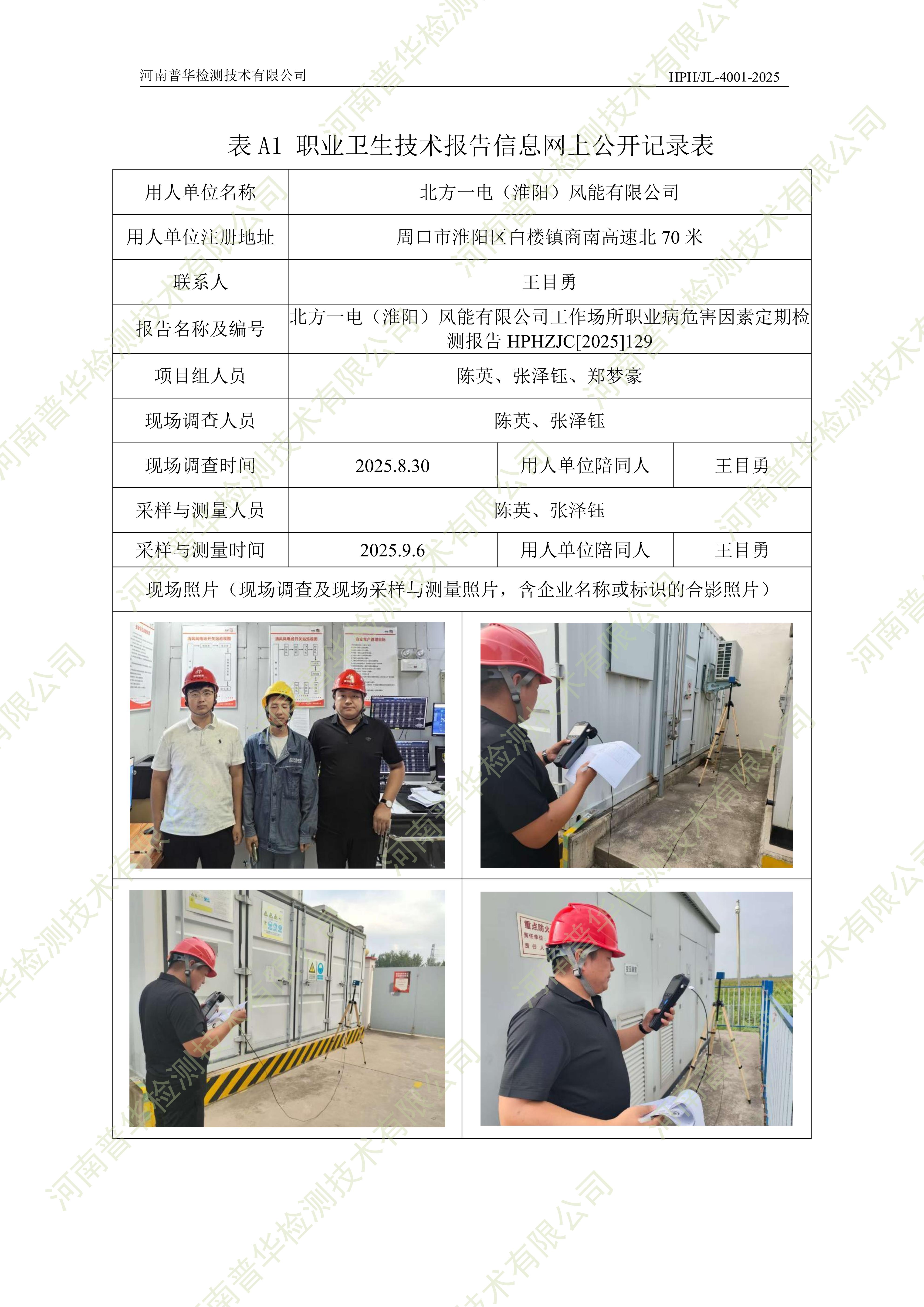 北方一电(淮阳)风能有限公司工作场所职业病危害因素定期检测 点击次数:75 次