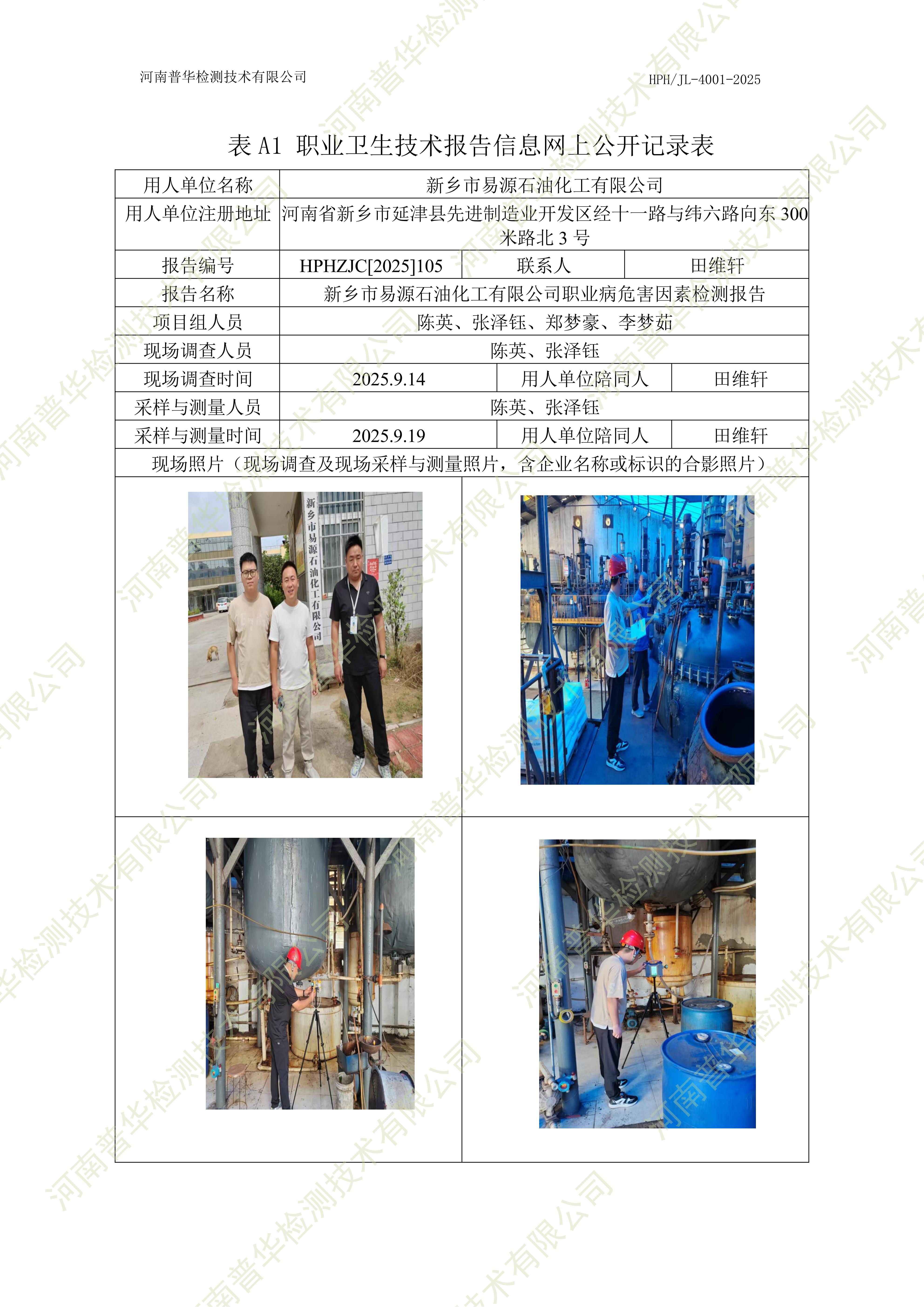 新乡市易源石油化工有限公司职业病危害因素检测 点击次数:79 次