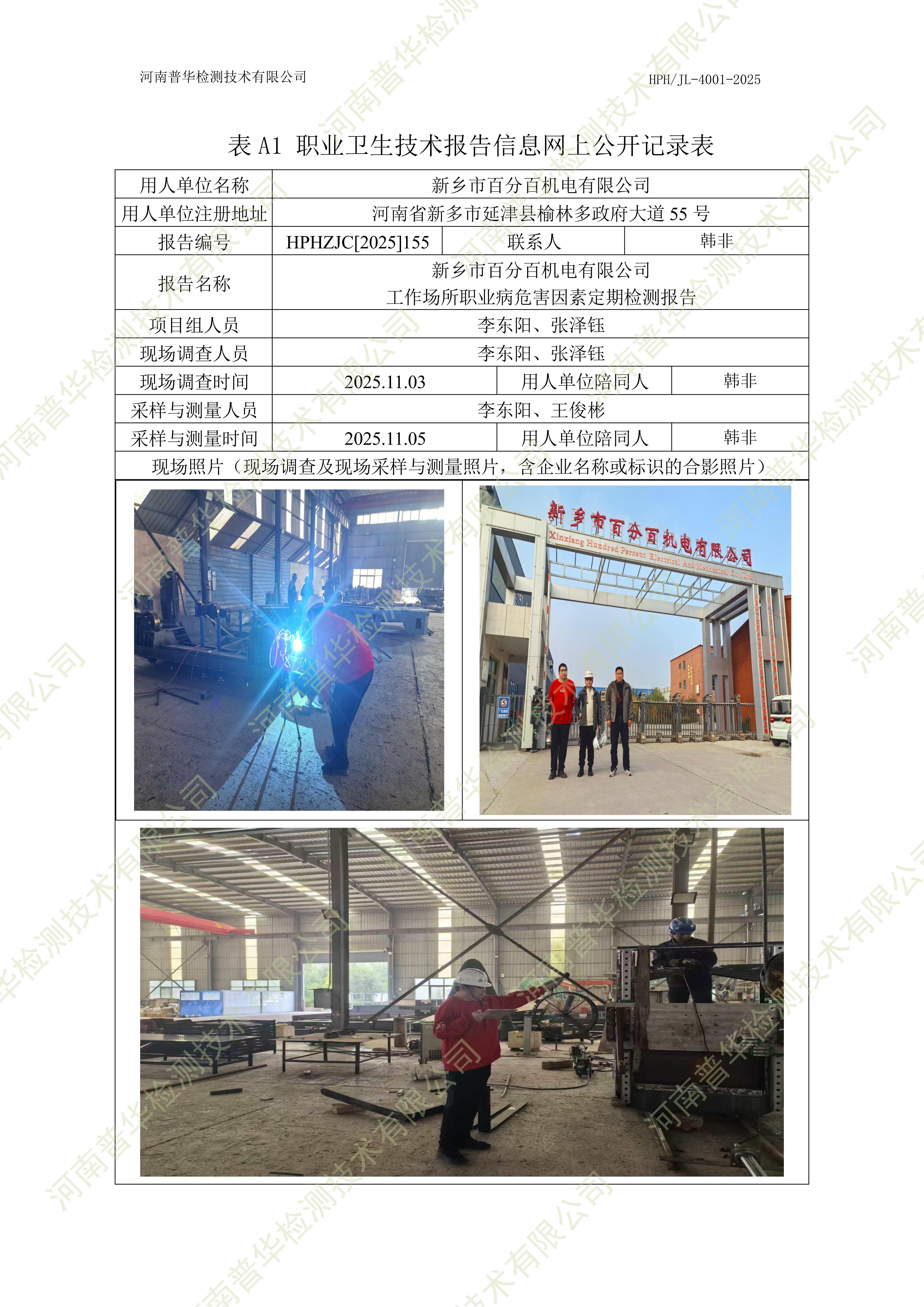 新乡市百分百机电有限公司工作场所职业病危害因素定期检测 点击次数:38 次
