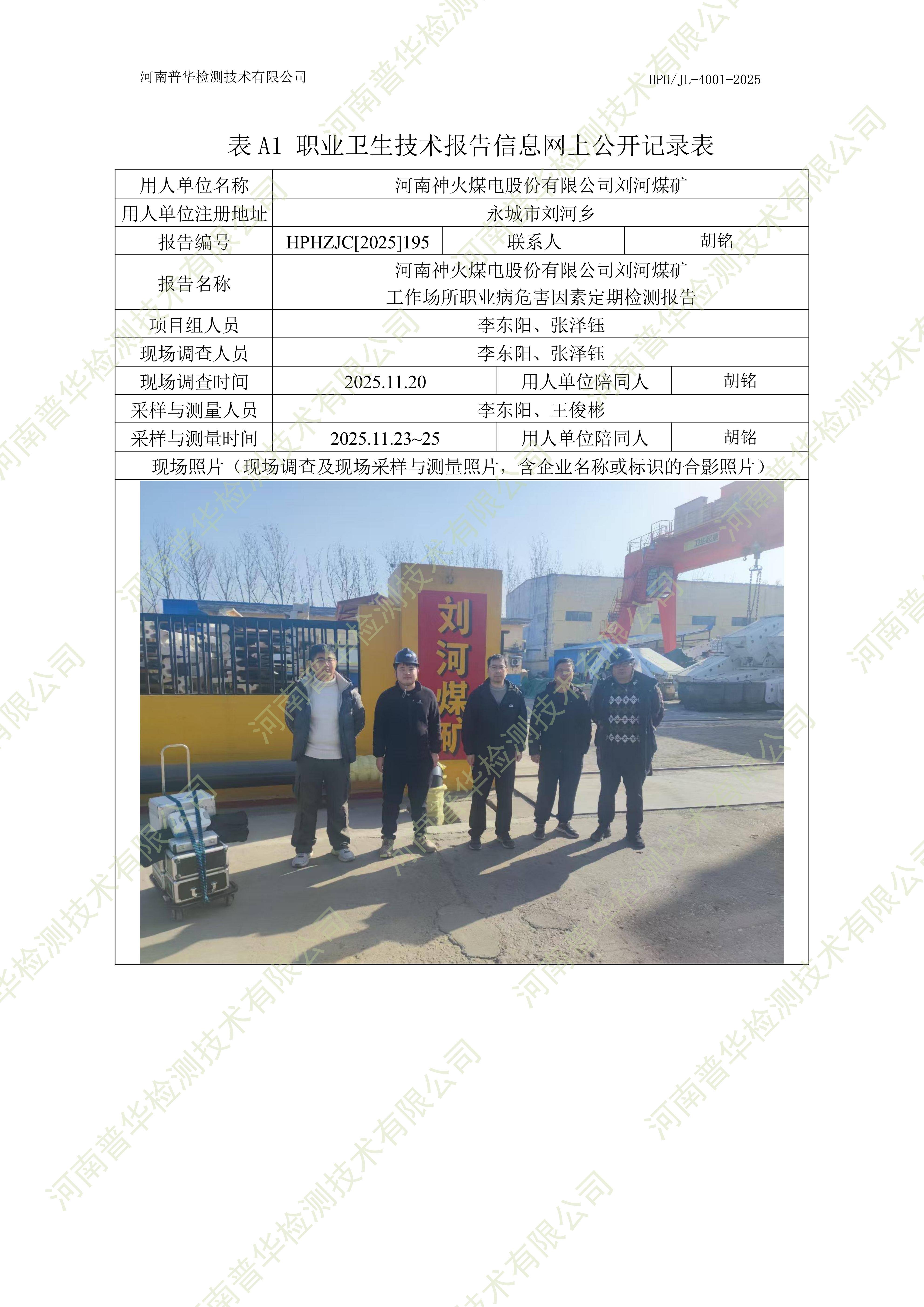 河南神火煤电股份有限公司刘河煤矿 工作场所职业病危害因素定期检测 点击次数:28 次