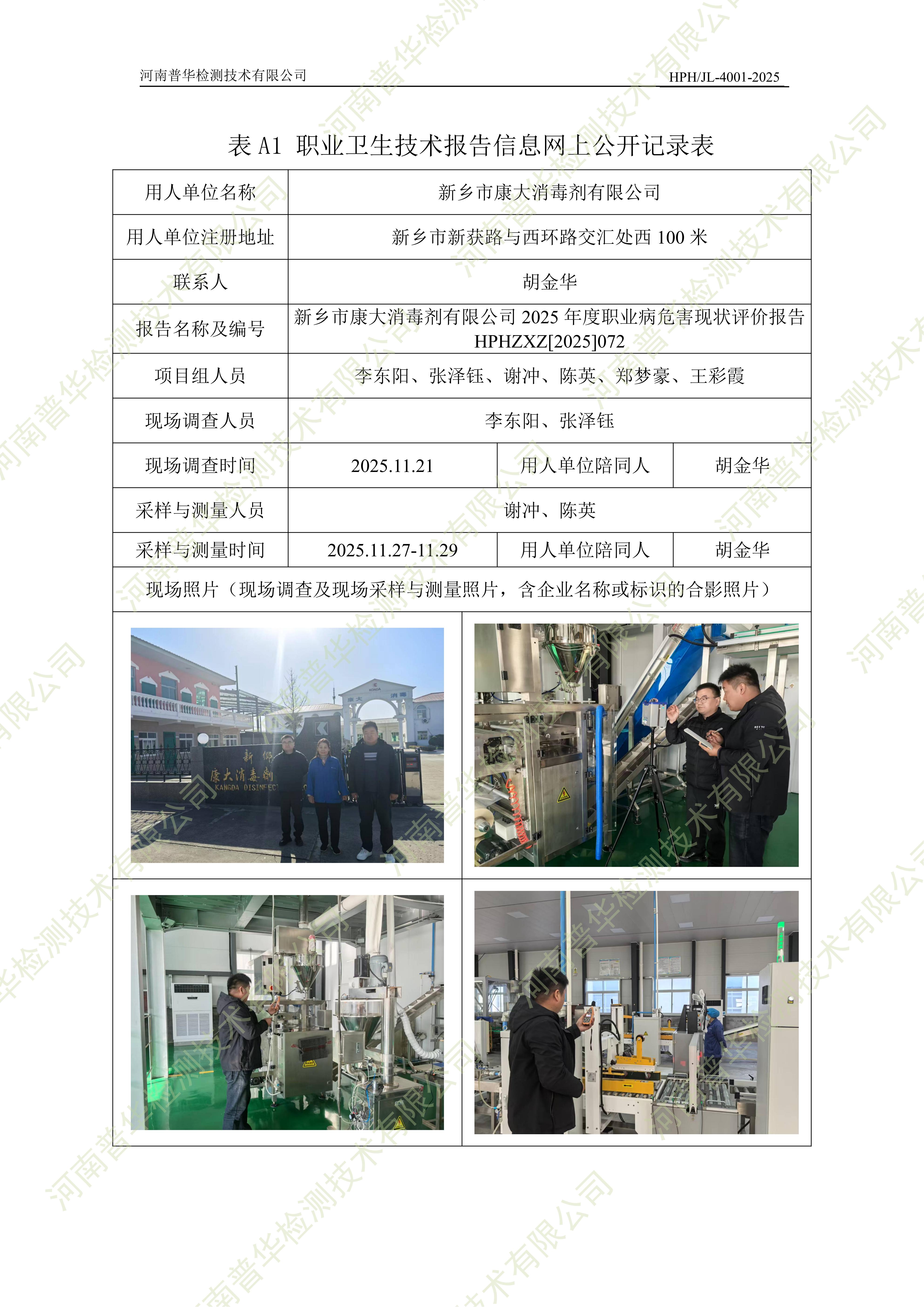 新乡市康大消毒剂有限公司2025年度职业病危害现状评价 点击次数:128 次