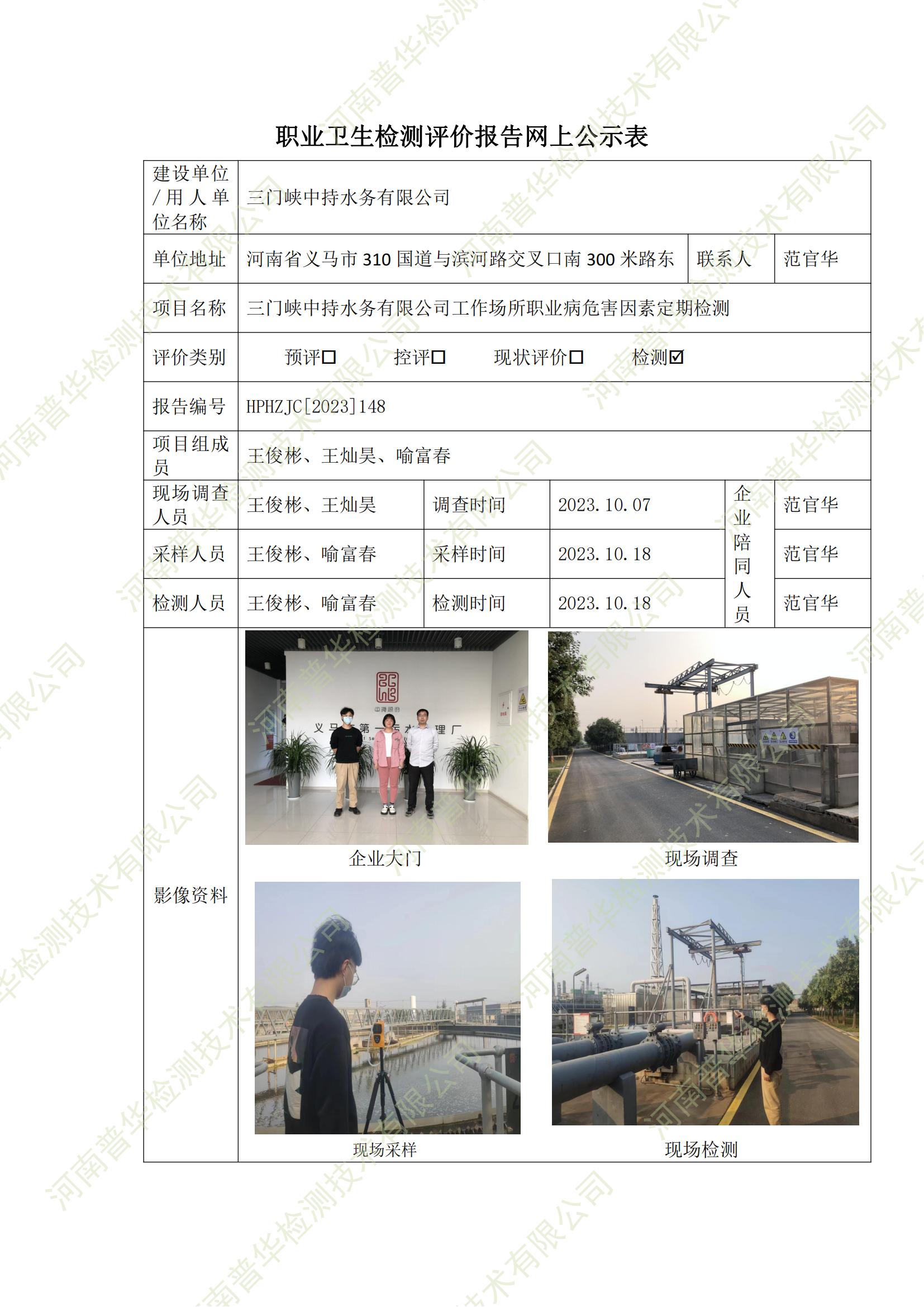 三门峡中持水务有限公司工作场所职业病危害因素定期检测 点击次数:1107 次