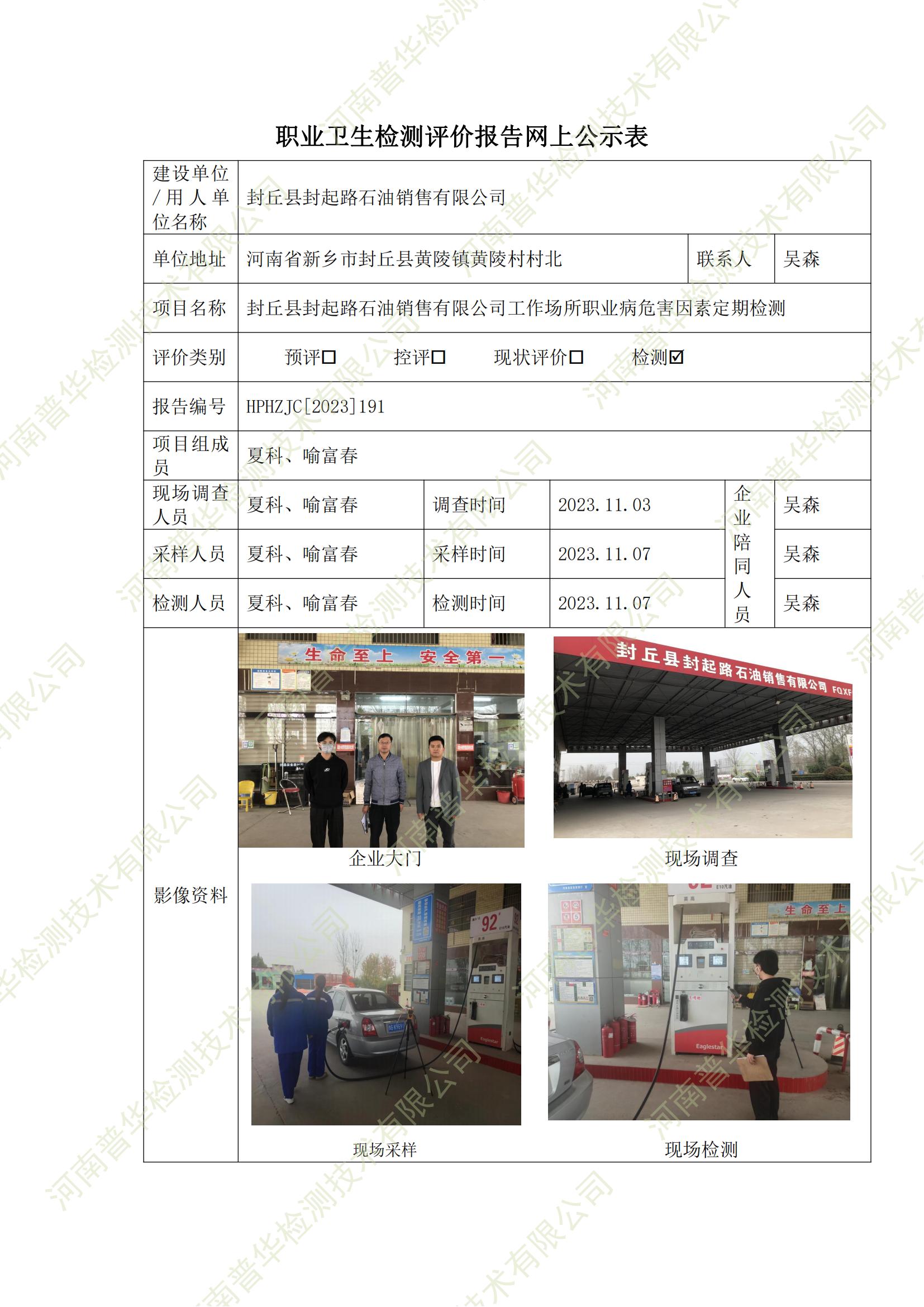 封丘县封起路石油销售有限公司工作场所职业病危害因素定期检测 点击次数:1198 次