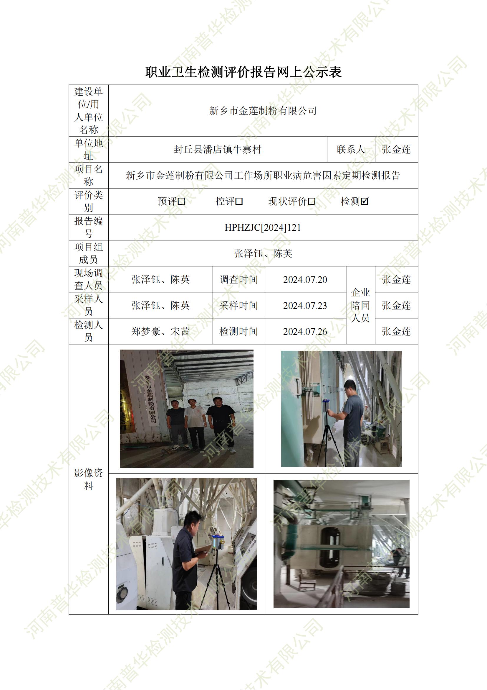 新乡市金莲制粉有限公司工作场所职业病危害因素定期检测 点击次数:942 次