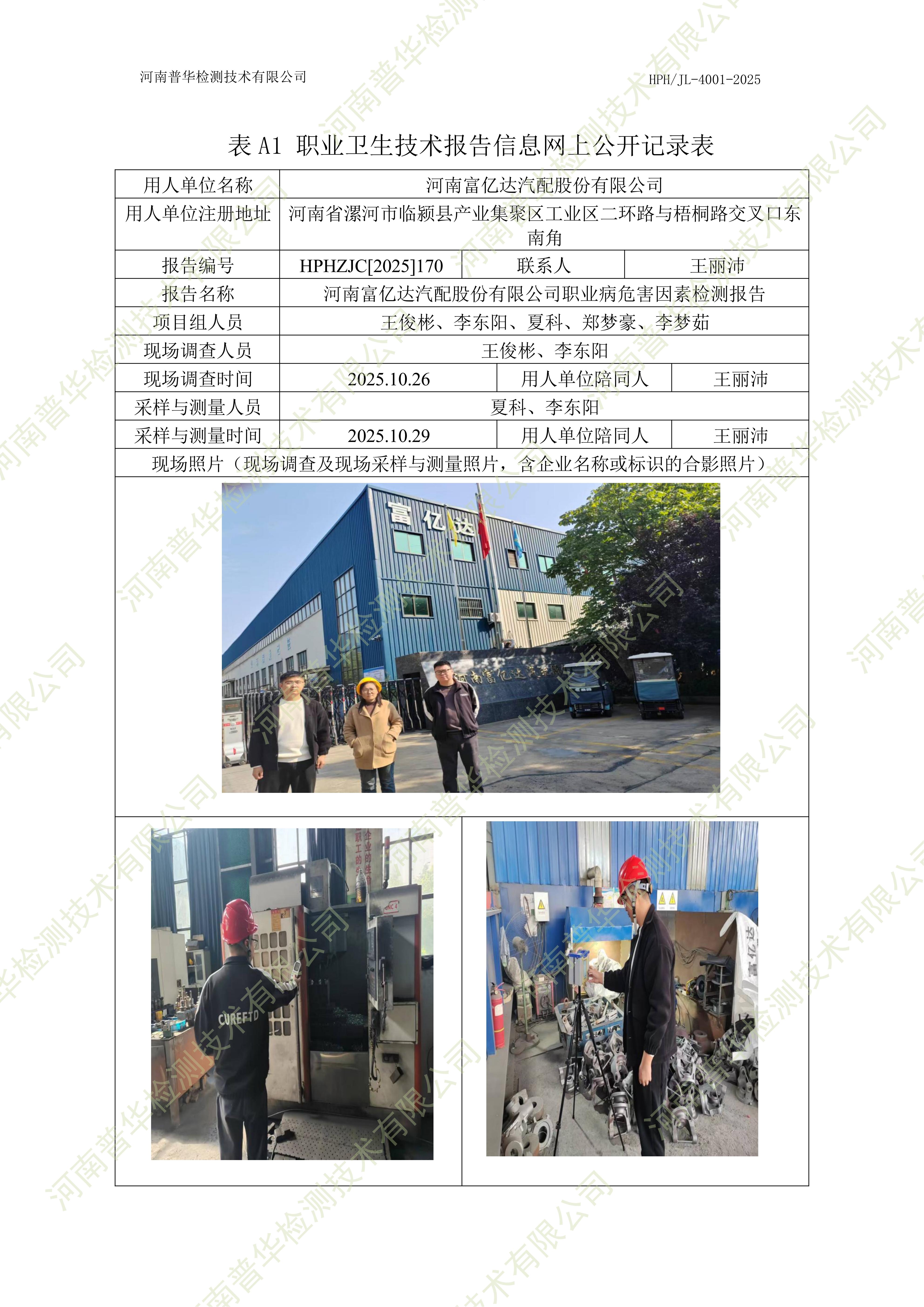 河南富亿达汽配股份有限公司职业病危害因素检测 点击次数:4 次