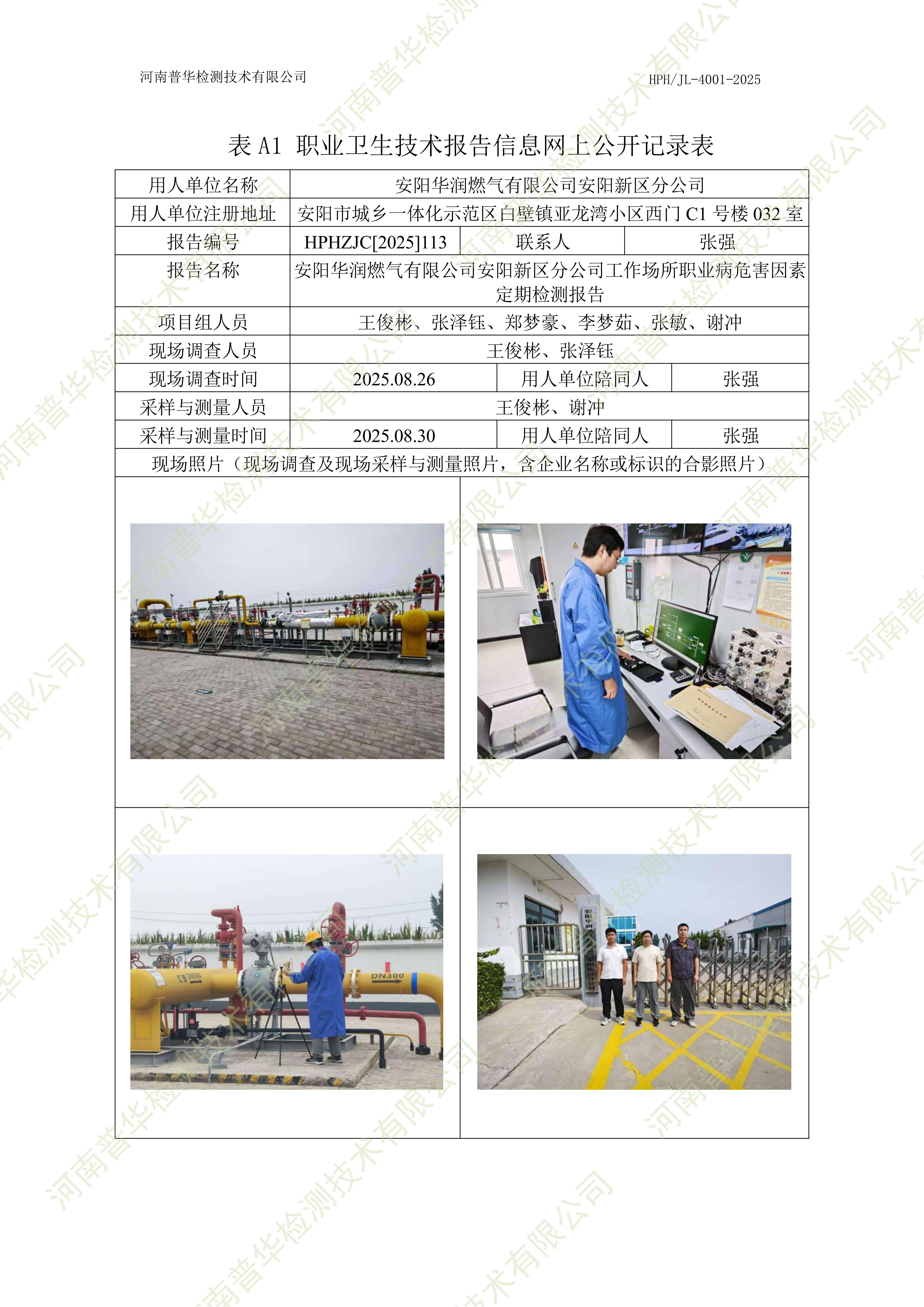 安阳华润燃气有限公司安阳新区分公司工作场所职业病危害因素定期检测 点击次数:17 次