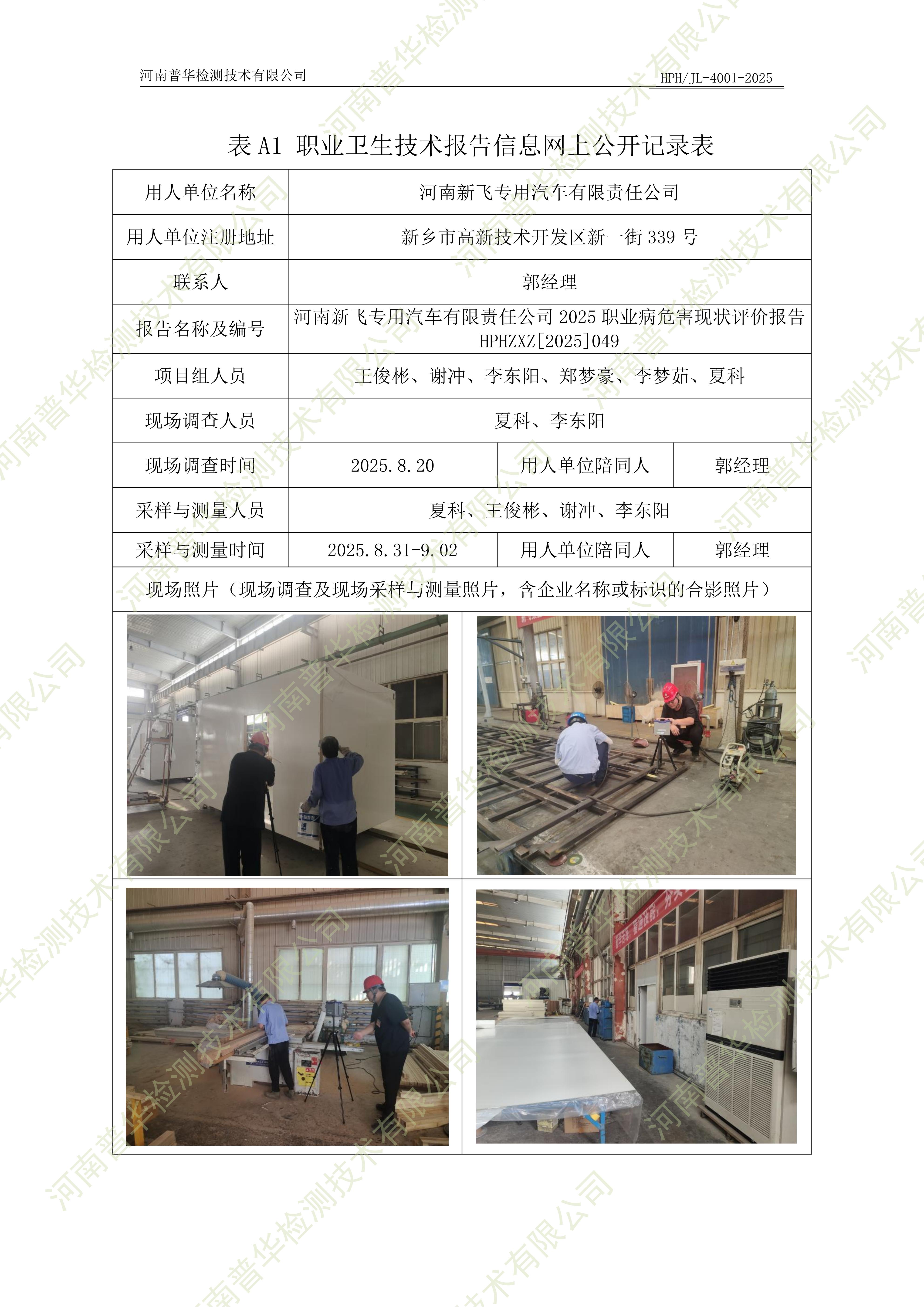 河南新飞专用汽车有限责任公司2025职业病危害现状评价 点击次数:43 次
