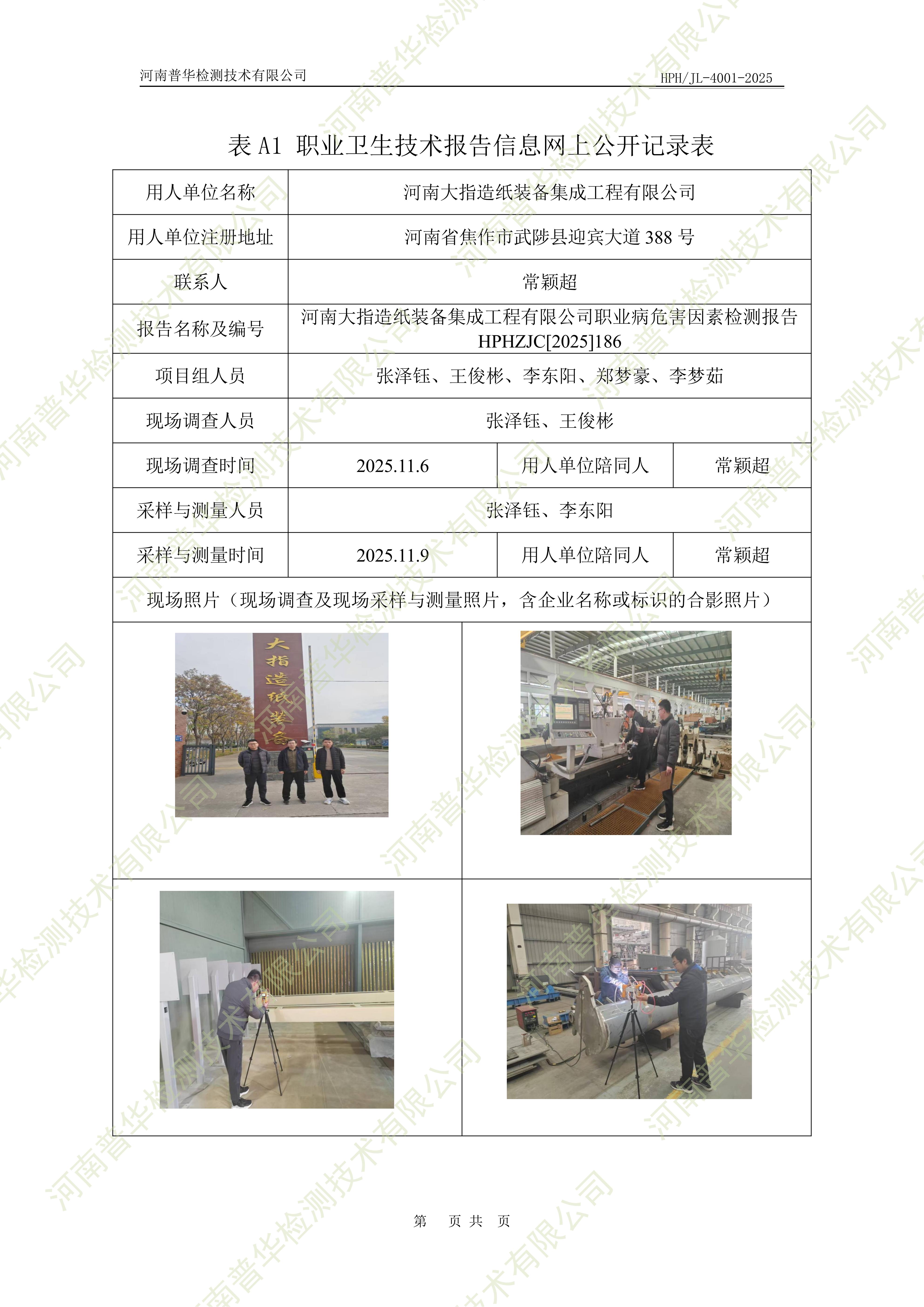 河南大指造纸装备集成工程有限公司职业病危害因素检测 点击次数:22 次