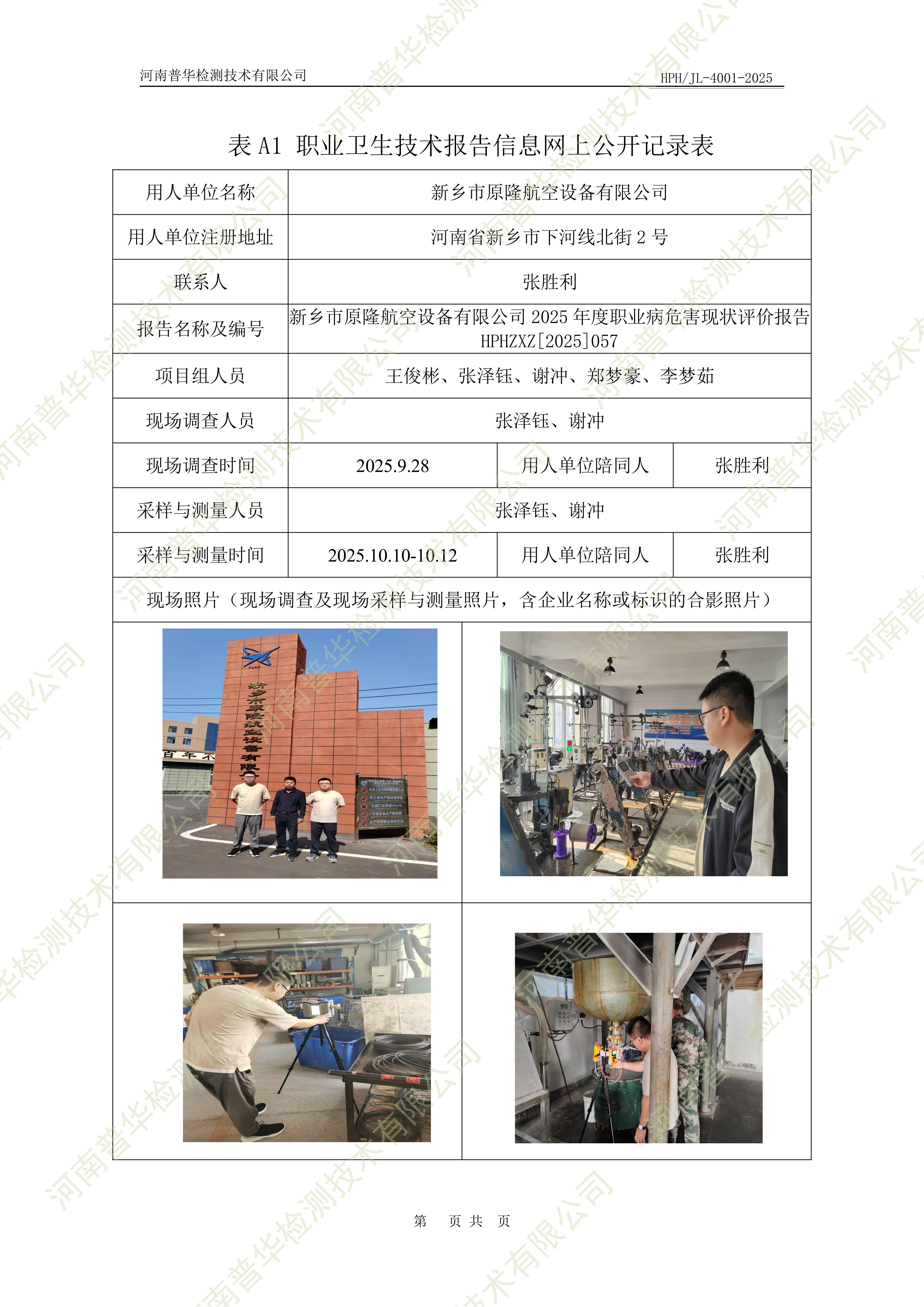 新乡市原隆航空设备有限公司2025年度职业病危害现状评价 点击次数:26 次