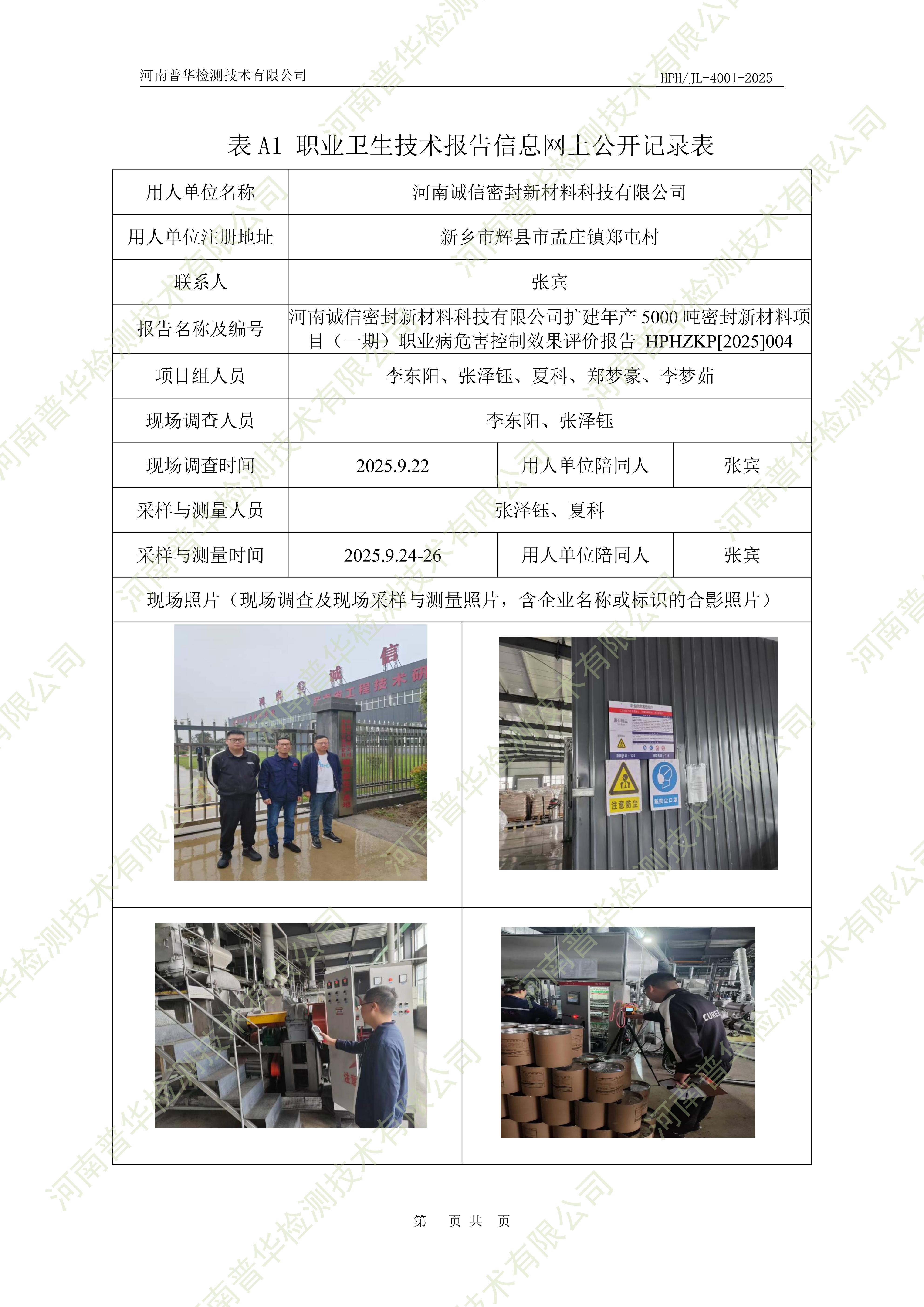 河南诚信密封新材料科技有限公司扩建年产5000吨密封新材料项目(一期)职业病危害控制效果评价 点击次数:88 次