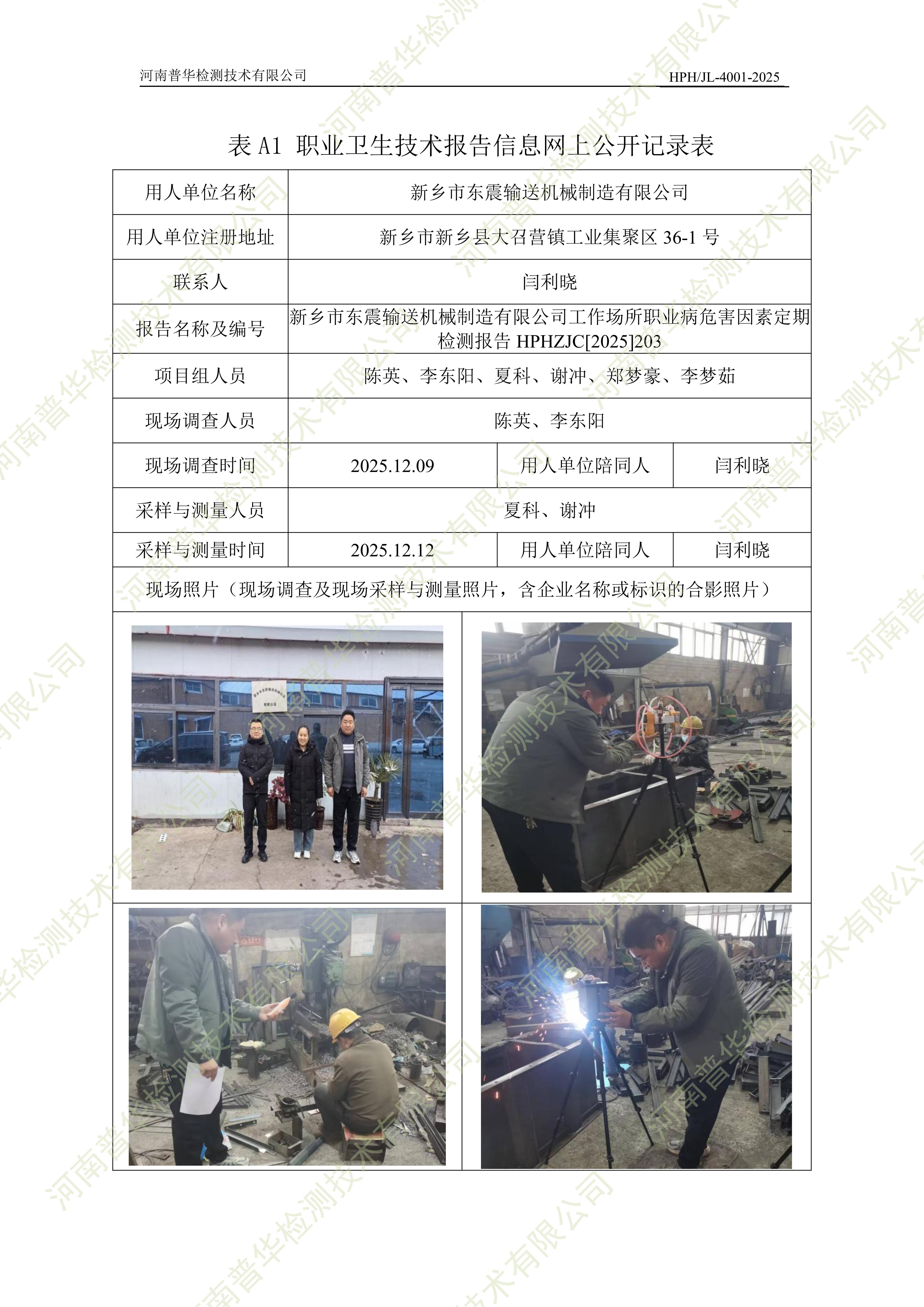 新乡市东震输送机械制造有限公司工作场所职业病危害因素定期检测 点击次数:98 次