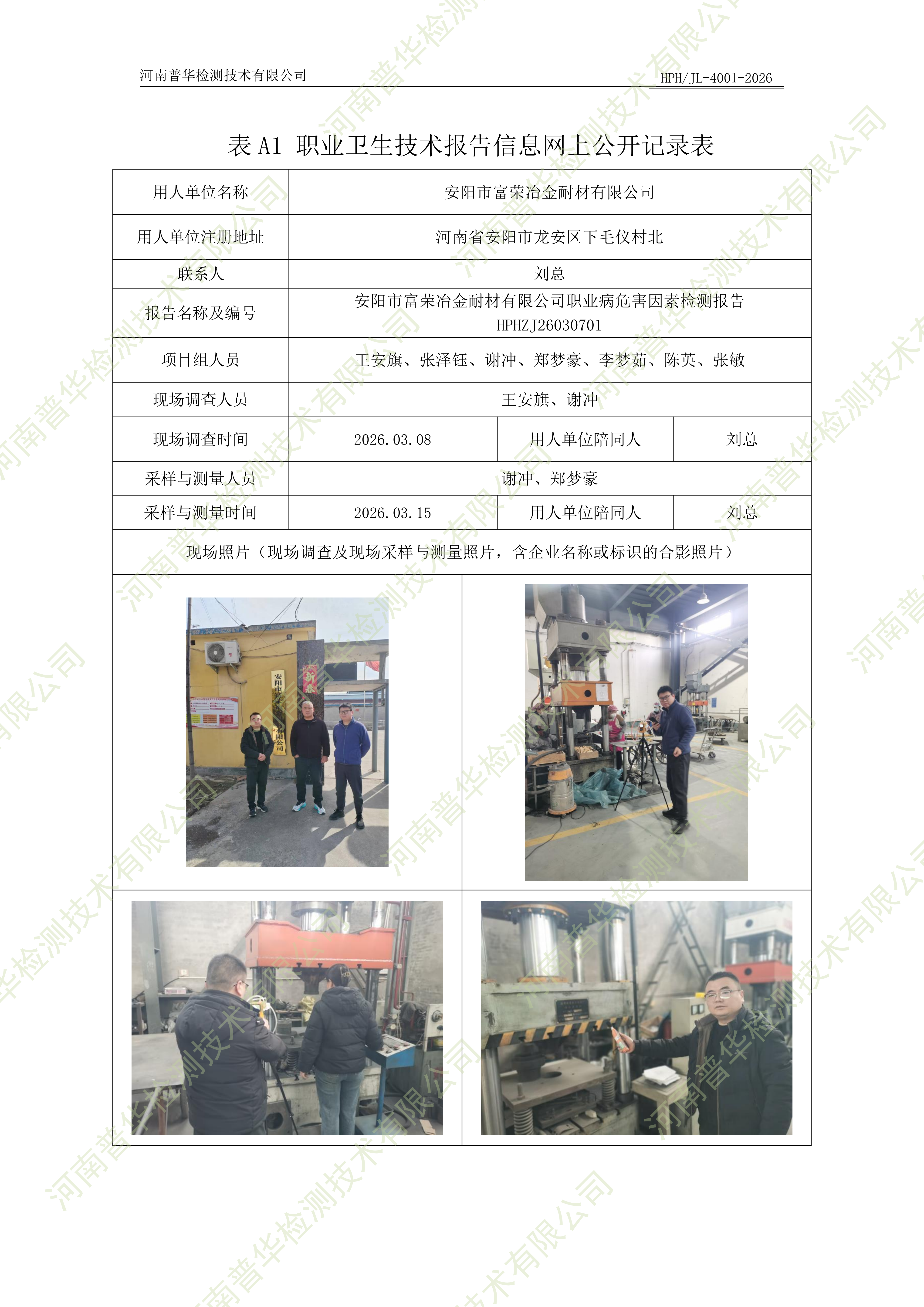 安阳市富荣冶金耐材有限公司职业病危害因素检测 点击次数:45 次
