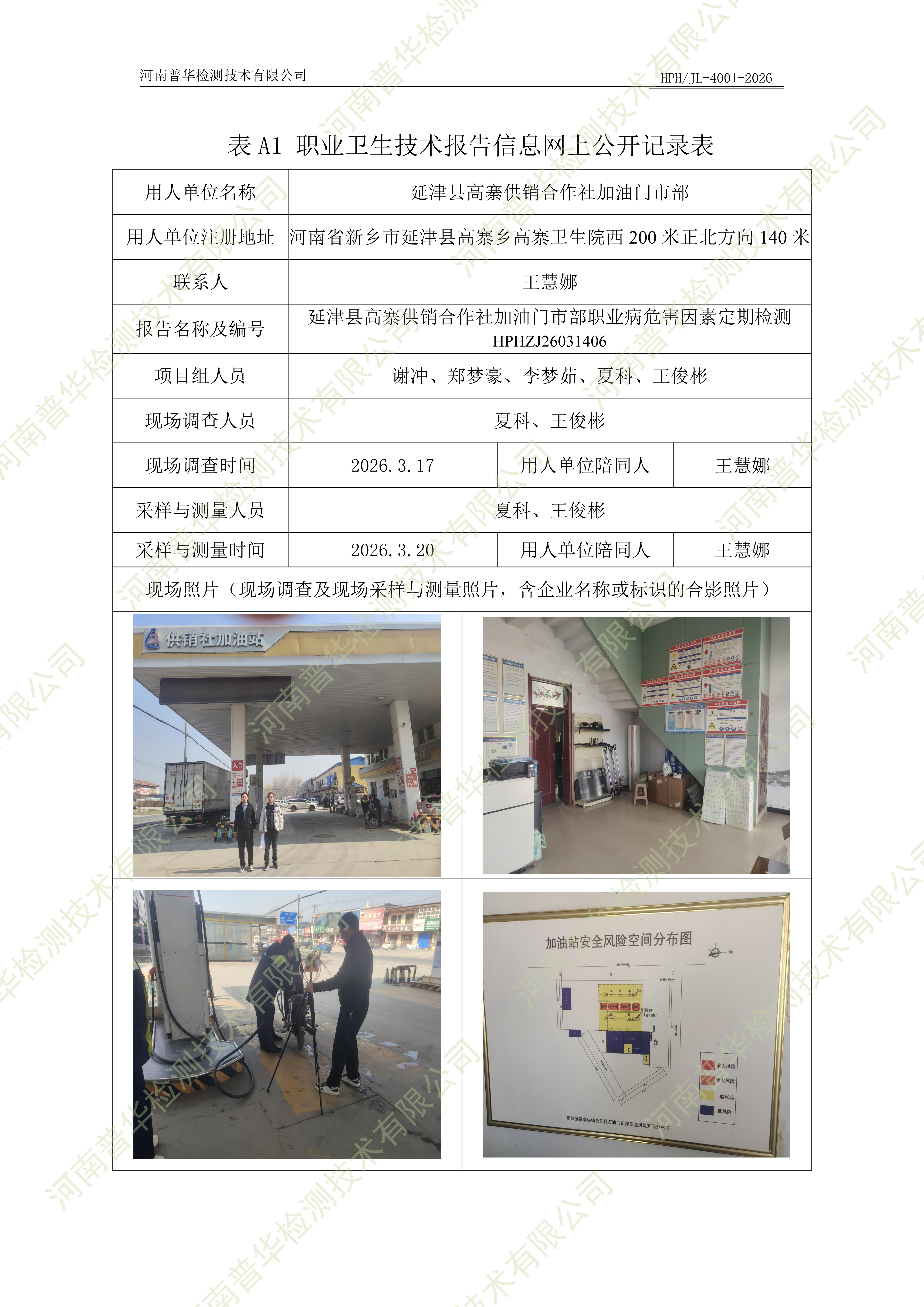 延津县高寨供销合作社加油门市部职业病危害因素定期检测 点击次数:18 次