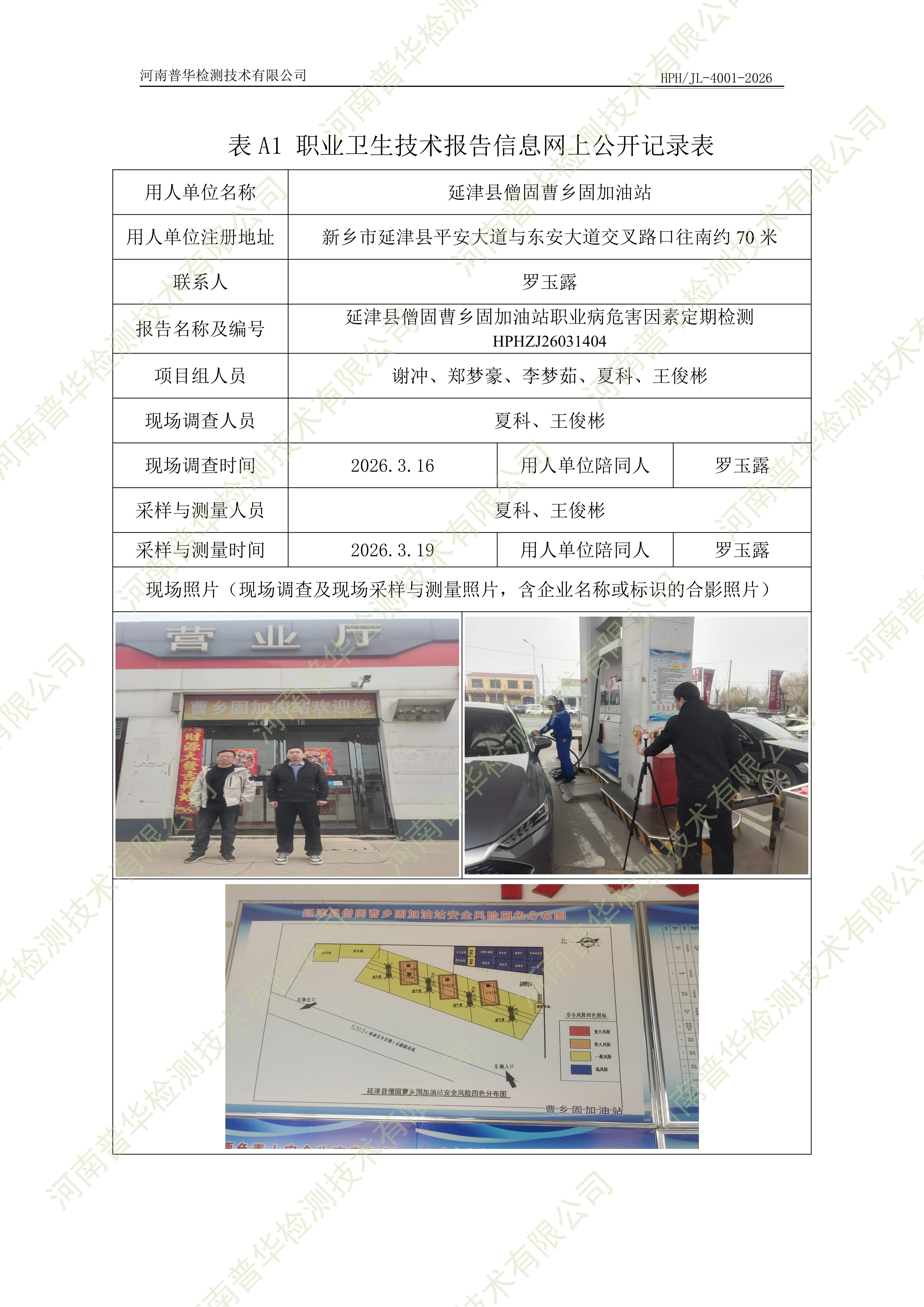 延津县僧固曹乡固加油站职业病危害因素定期检测 点击次数:13 次