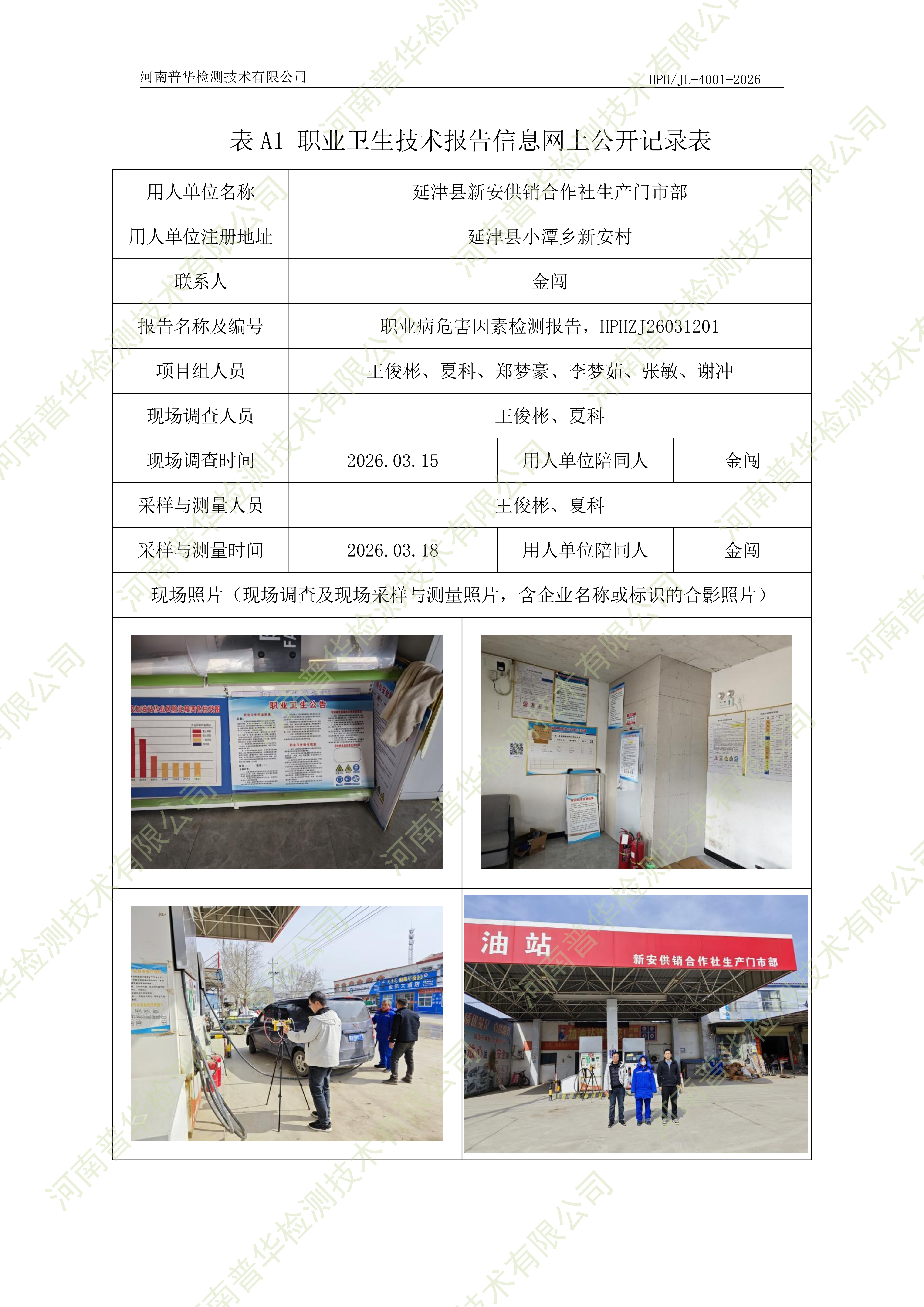延津县新安供销合作社生产门市部职业病危害因素检测 点击次数:11 次